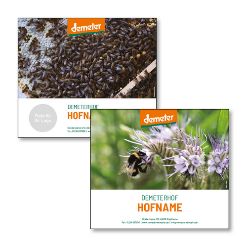 Hofschilder im Demeter-Design mit Imkerei Motiv.